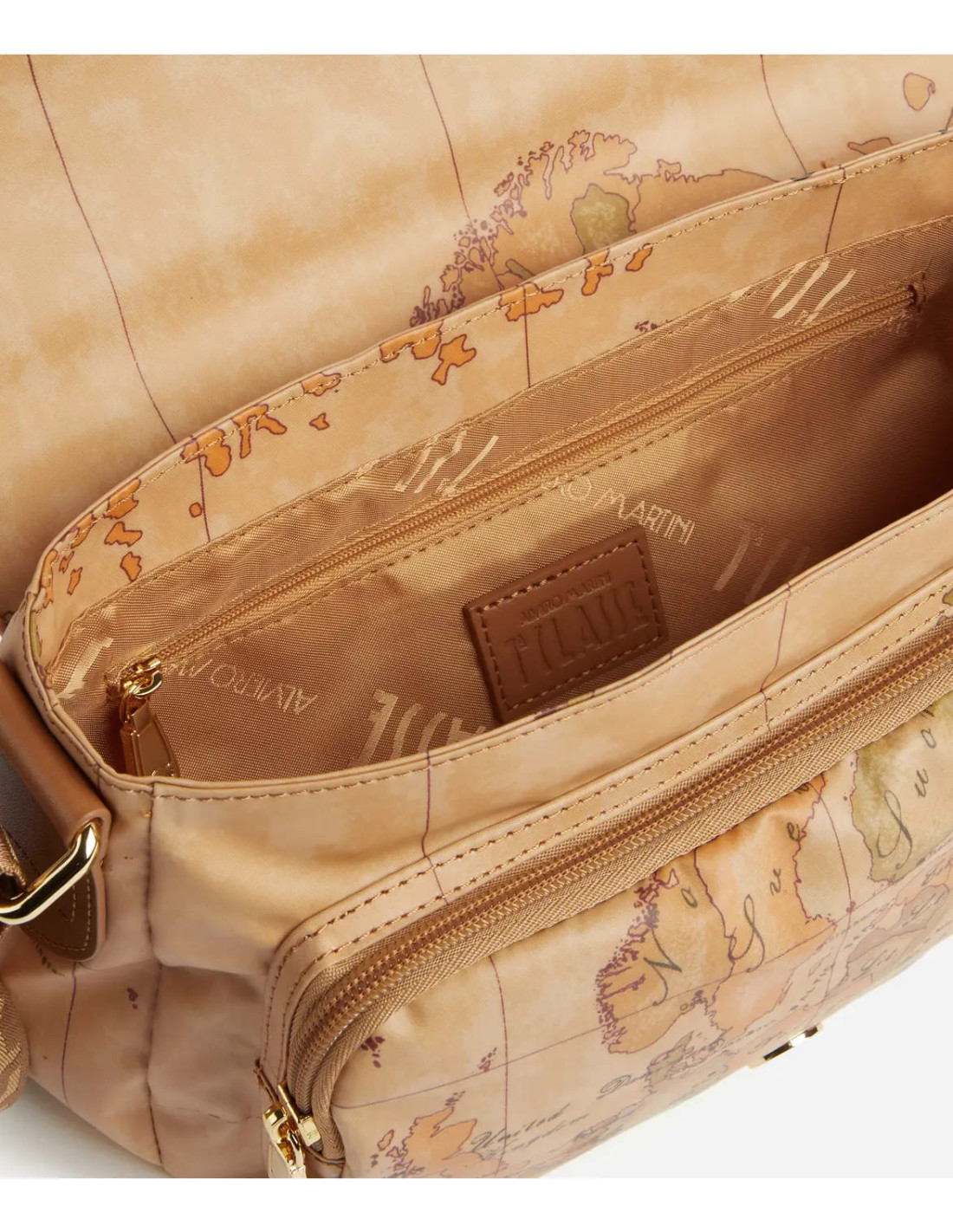 The timeless Geo Classic fabric shapes the Gold Touch Shoulder Bag, enhanced by a sculpted flap in refined grainy leather. At the center, the new light gold snap closure proudly displays the raised 1ᴬ Classe logo, adding a special touch to the design. The removable handle and shoulder strap in fine grainy leather provide versatility, allowing the bag to be worn on countless occasions. A classic accessory with a fresh twist, perfect to pair with any summer outfit for a radiant finishing touch.