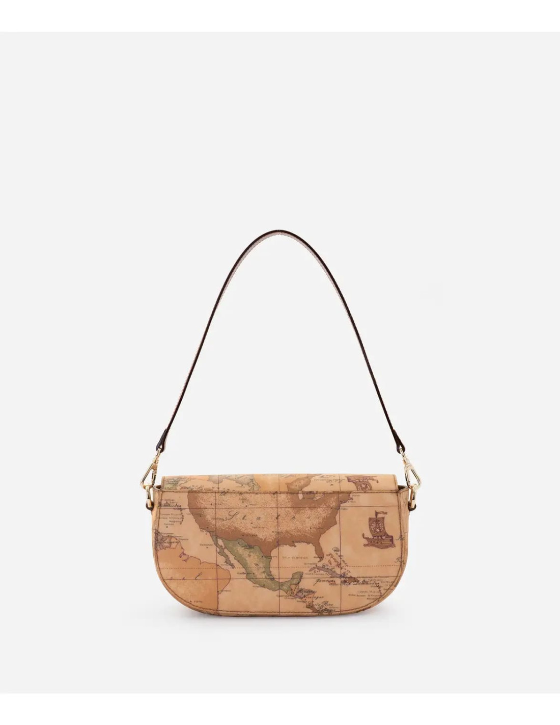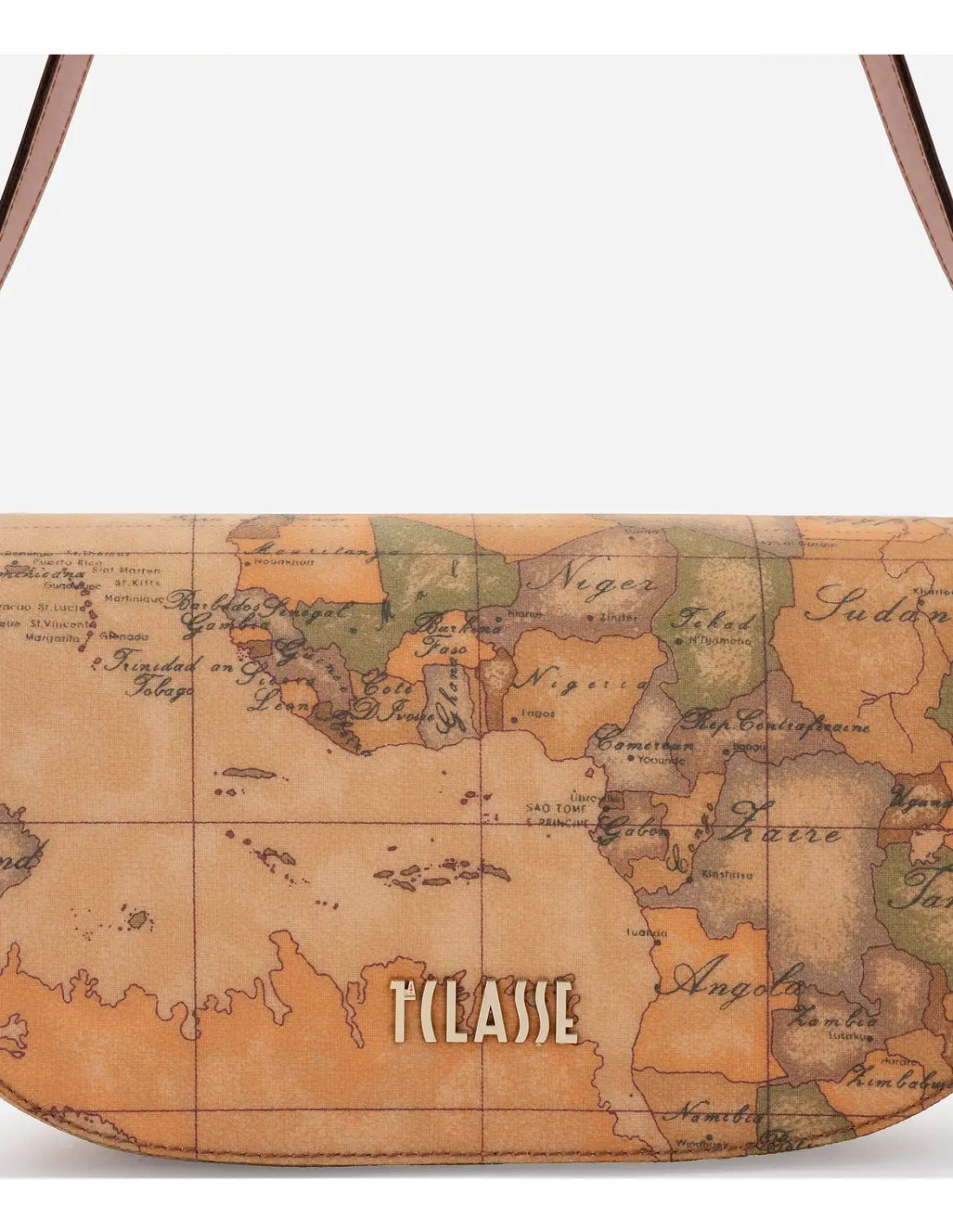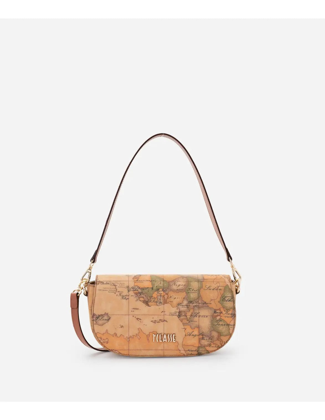 This Alviero Martini shopping bag, made of recycled nylon, is immediately recognizable thanks to the two handles with Geo Classic print and the 1C front logo.